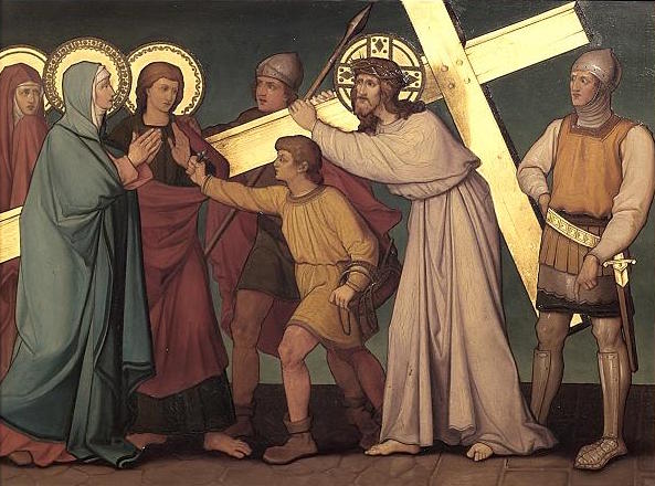 Et maintenant Elle s’approche de Lui quand Il monte le chemin sacré avec sa Croix sur les épaules.