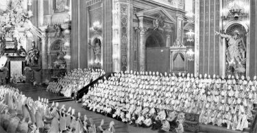 Ce mercredi ensoleillé, 1er novembre de l’année sainte, un demi-million de fidèles des quatre coins monde entourait Pie XII sur la place Saint-Pierre.